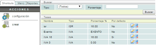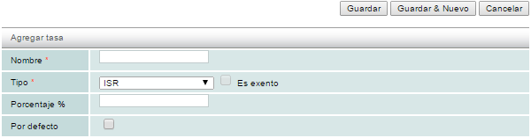 El sistema no cuenta con tasas configuradas automáticamente, por lo cual tendrá que configurar cada una de las tasas que se emplearán en sus operaciones.