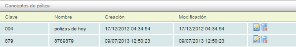 Ya capturados los conceptos de póliza, el sistema permite filtrarlos por Clave y Nombre.