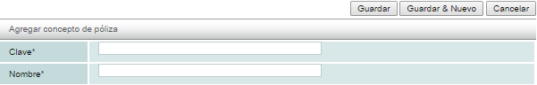 Nota: estos conceptos se cargarán al momento de crear una póliza en el campo concepto, solo es necesario escribir la clave o el nombre.