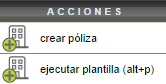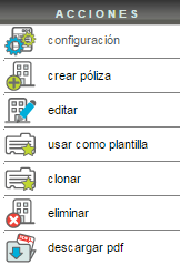 El menú "Acciones" funciona de la misma manera que el de pólizas.