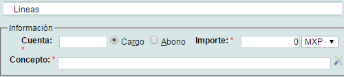 - Cargo o abono: seleccionar si esta línea es de cargo o abono.