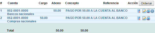 Guardadas las líneas, le mostrará las opciones: editar, eliminar y agregar transacciones. Para editar de click en el ícono