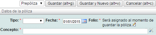 Folio: de forma automática, nuestro portal asigna la numeración correspondiente a cada póliza; si prefiere hacerlo manualmente, solo de click en el ícono