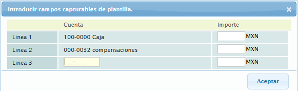 Nota 1: una vez que seleccione o ejecute la plantilla, si no capturó la cuenta cuando se creó, encontrará el campo vacío donde podrá capturarla.