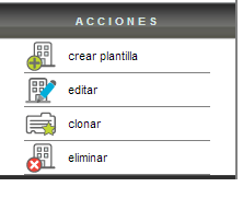 Otra forma de editar, eliminar o clonar es seleccionar la plantilla deseada, al dar click en la plantilla le desplegará el menú "Acciones" y el detalle de la póliza.