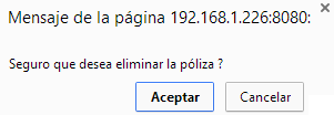 Eliminar póliza: al dar click en esta opción el sistema muestra esta advertencia: