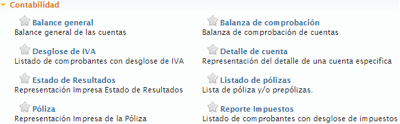En seguida le mostrará varias opciones de reportes, dé click en el botón de "Contabilidad".
