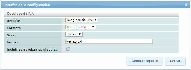 - Serie: el sistema automáticamente le muestra la opción “Todas” pero usted puede seleccionar cualquier serie para desglosar el IVA en específico