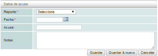 Para crear un nuevo acuse, de click en "+ Añadir" en el menú "Acciones", localizado en el lado izquierdo, después es necesario que capture los siguientes datos: