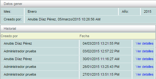 En la pestaña Reporte presentará los datos generales (mes, año y por quien fue creado).