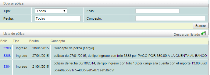 Para entrar directamente en la póliza, de click en el número de Folio y lo mandará a la póliza.