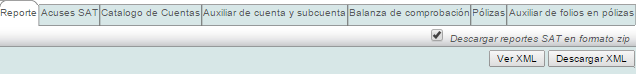 Configuración: esta opción puede consultarla en los capítulos anteriores. Añadir Acuse: permite agregar un acuse de recepción de comprobante del SAT. Descargar catálogo, balanza y póliza: le permite descargar sus archivos XML comprimidos en .zip. |