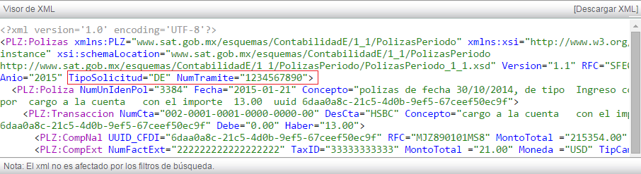 Nota: si solo requiere ver el XML de pólizas sin que el SAT lo haya requerido, puede utilizar en "Número de orden" el siguiente: AAA0999999/99 y en "Número de trámite" el siguiente: 1234567890.