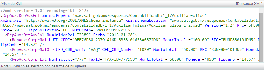 Para descargar este XML, de click en la opción "Descargar XML".