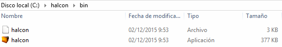 Inside the "bin" folder you will find the Halcón.exe application which you must run to start the installation of the program (on some computers it is necessary to run the application in administrator mode), we suggest creating a shortcut on the desktop for the application.