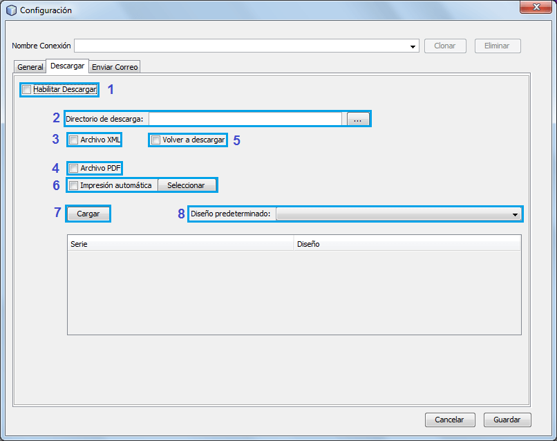 - Habilitar descargar: if this option is enabled, the application will store the information captured in this tab, otherwise the application will understand that you do not want to save any download configuration.