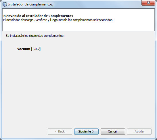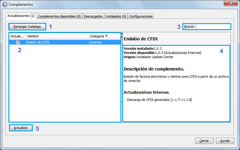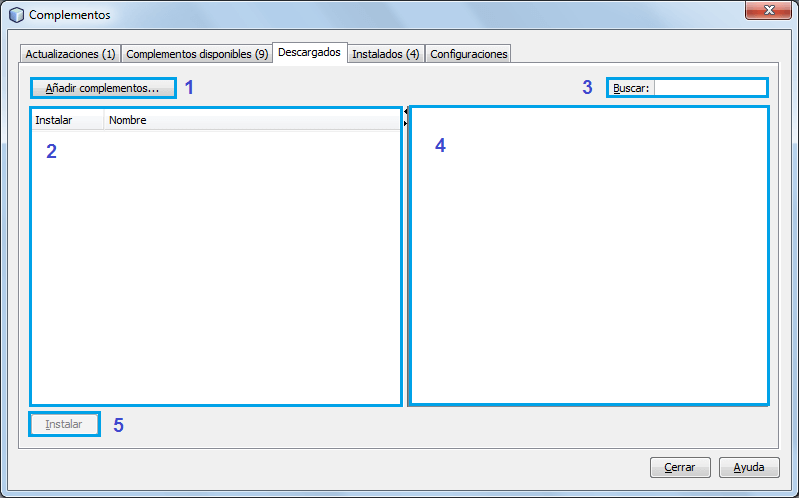 This section adds complements that have been downloaded, either to install or update. Generally this option is used in cases where there are problems with the update host.