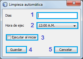 - In this field, select the desired time for the application to begin cleaning every time the period of time configured in the "Días" field expires.