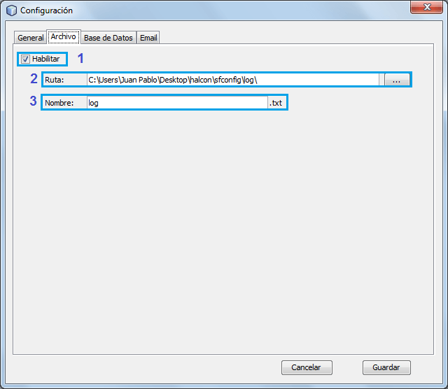 - Habilitar: if this option is enabled, the application will save the log in the database.
