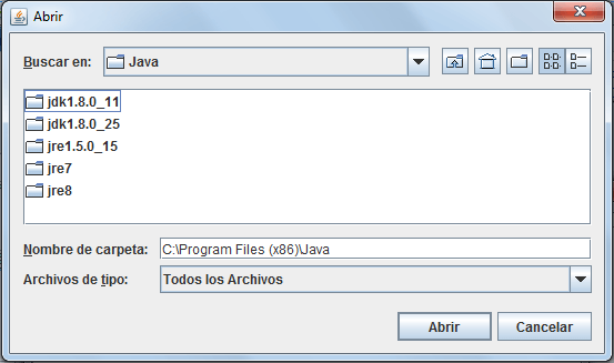 Note: select the Java folder with which you run your application; if you do not have more than one version of Java, skip this step.