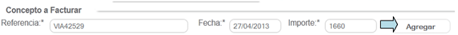 Enter your invoice information: reference, date, and total. When finished, click the "Agregar" button.