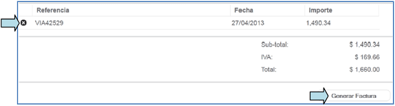 When you have finished adding the receipt(s) to be invoiced, click on the "Generar Factura" button.