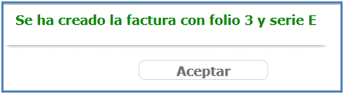 The system will confirm the creation of your invoice and will indicate its folio and series.