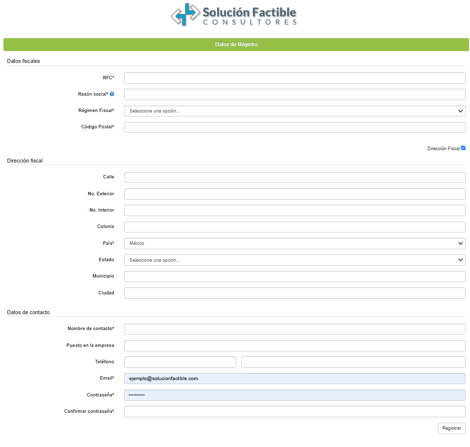 If you wish to register your tax information, click the "Regístrate" button. However, you do not need to log in or be registered to issue your electronic invoice.