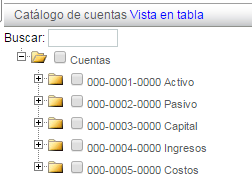 Al ingresar al módulo, podrá visualizar las opciones del sistema, dé click en el enlace "Catálogo de cuentas" para acceder.