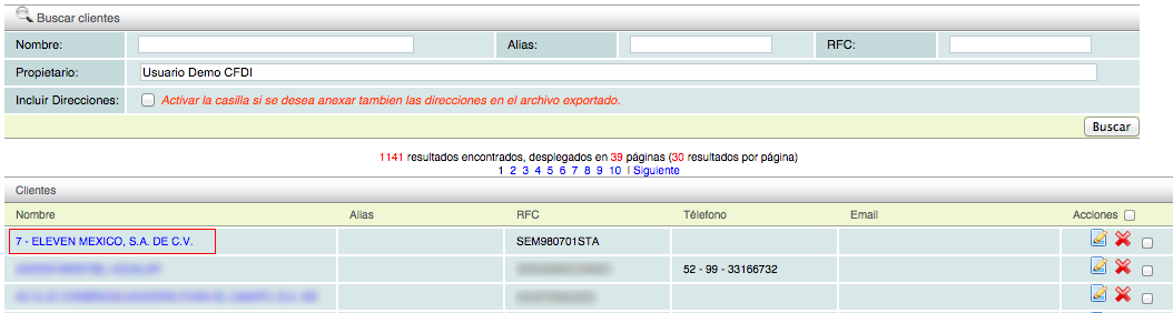 Una vez dentro del módulo, podrá visualizar el catálogo de clientes, de click en el cliente al quien desea editarle los datos.