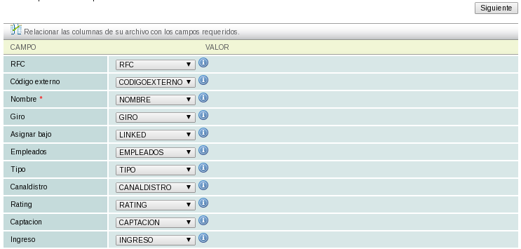 Los datos obligatorios son: RFC, NOMBRE, PAIS, ALIAS, CALLE y CP., los demás datos solicitados son de carácter informativo y solo le ayudan a mantener una mayor información de su cliente, sin embargo no van impresos en su factura electrónica.