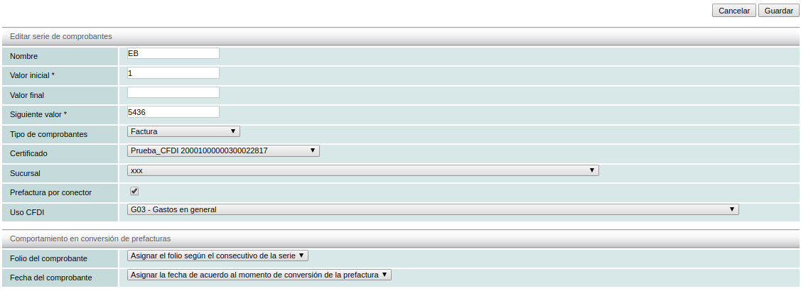 Que el usuario conozca la forma de cambiar los valores de una serie como el nombre, valor inicial, Tipo de comprobante, etc.