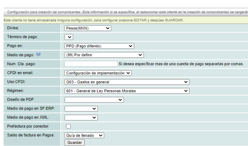 After specifying the necessary fields, click the "Guardar" button to update the tax information.