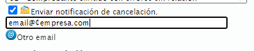Next, click on "Otro email" to notify the user via email that they must log in to their tax mailbox to continue the cancellation process.