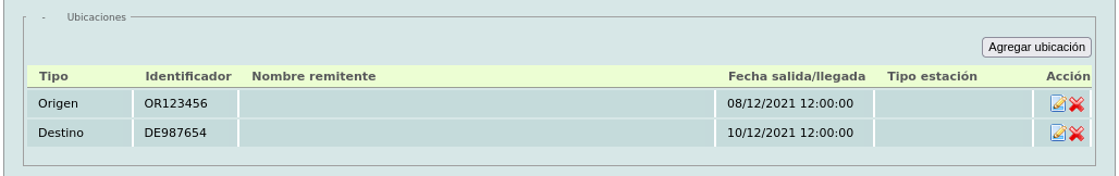 y Id destino (ubicación destino) son obligatorios sólo cuando