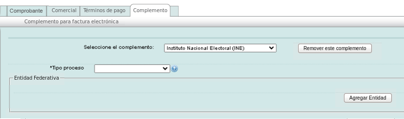 Next, click and select the "Instituto Nacional Electoral (INE)" complement from the list.