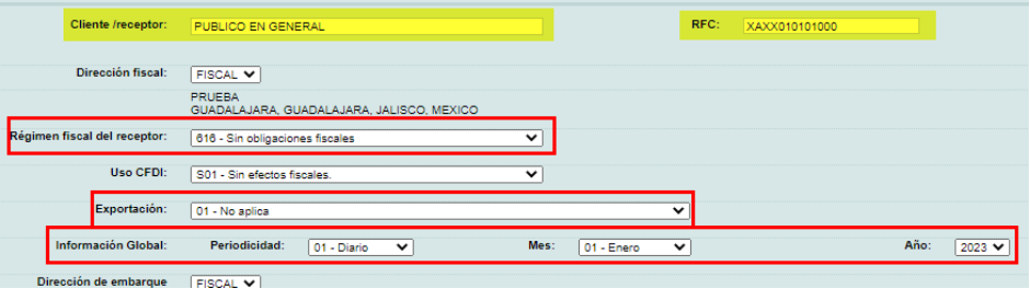 ** This attribute is only required when the client name is “PUBLICO EN GENERAL” and the RFC is “XAXX010101000”.