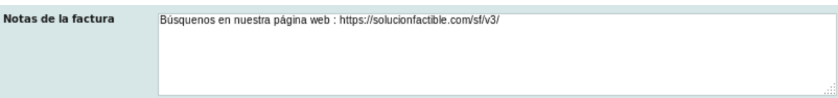 El campo "Notas de factura" es opcional y se ve reflejado en la representación impresa (PDF) de su factura electrónica, este apartado no tiene límite de caracteres por lo que puede ingresar cualquier tipo de información especial que desee dirigir a sus clientes.