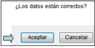 Confirme que los datos son correctos dando click en el botón "Aceptar"
