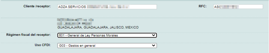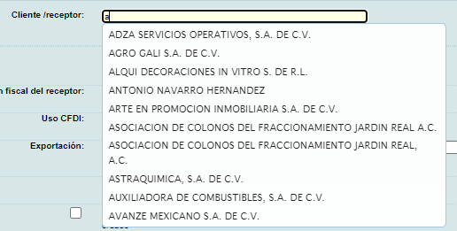 Ingrese el nombre o RFC del "Cliente Receptor" del comprobante, conforme ingrese los datos, se mostrará una