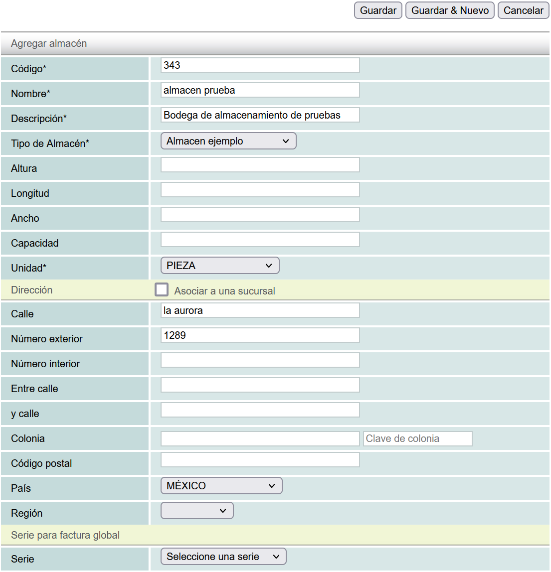 Código del Almacén: cualquier palabra o números para identificar este almacén.