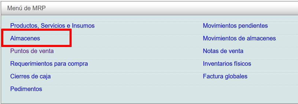 Luego, de click en la opción "Almacenes".