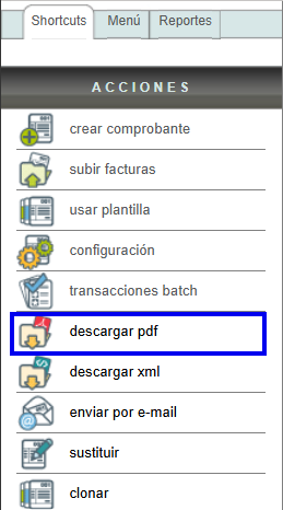 De click en el botón "Descargar PDF" ubicado en el menú "Acciones".