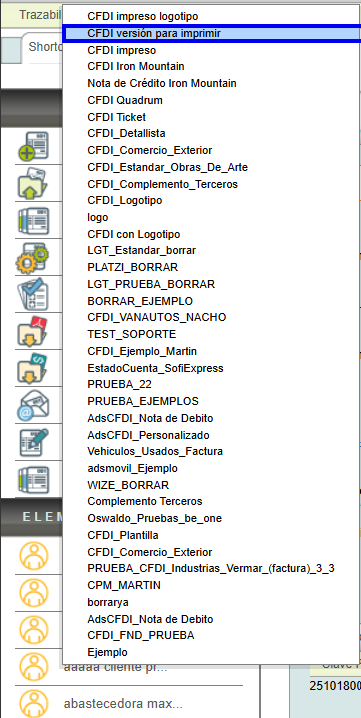 "CFDI versión para imprimir", que refiere a la representación impresa predeterminada, después