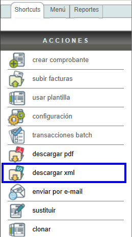 De click en el botón "Descargar XML" ubicado en el menú "Acciones".