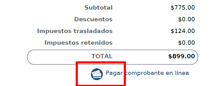 Below the total, you will see the text: "Pagar comprobante en línea". Click on the icon to the left of the text or on the word "Pagar".