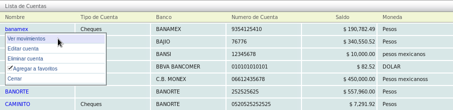 Se mostrarán todas las cuentas activas e inactivas. Dé click en la cuenta deseada y después en la opción "Ver movimientos".