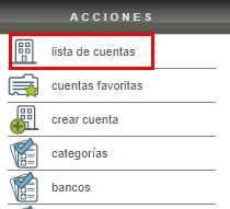 De click sobre la cuenta en dónde desea registrar el movimiento. Para seleccionar otra cuenta, vaya a la columna izquierda del menú Acciones y presione "Lista de cuentas".