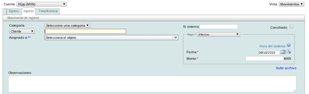 Tags: Finanzas, registrar, movimientos, ingreso