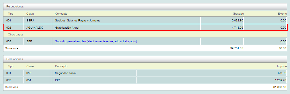 Tags: Nómina, recibo, aguinaldo, ordinaria